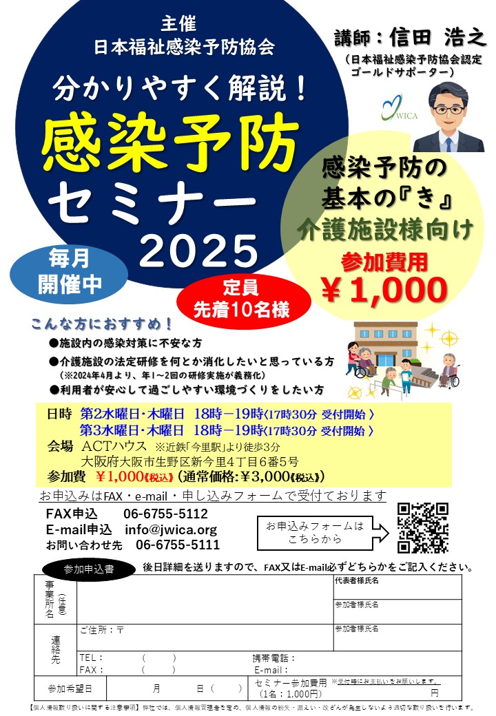 「分かりやすく解説!感染予防セミナー2025」は、一般社団法人日本福祉感染予防協会主催の、 初心者向け感染予防セミナーです。基本的な感染症対策を、日本福祉感染予防協会認定の講師が初心者様の目線で“わかりやすく解説”します。